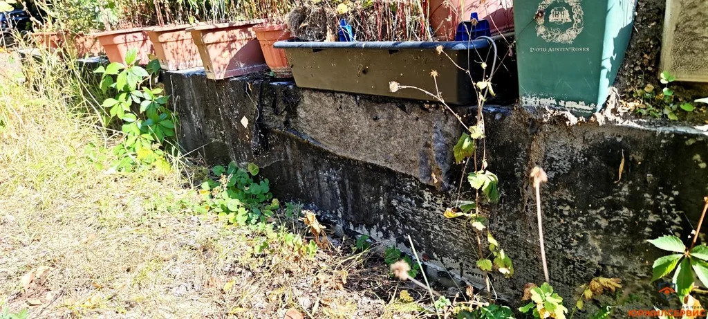 - Фундамент из блоков ФБС (ленточный) 6*6 м. К нему подведено электричество, канализация, скважина.