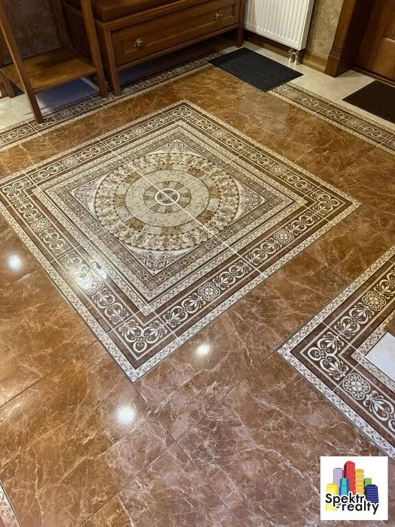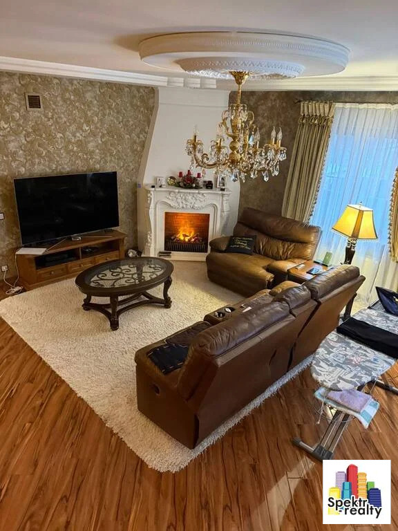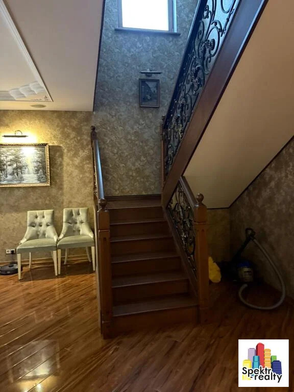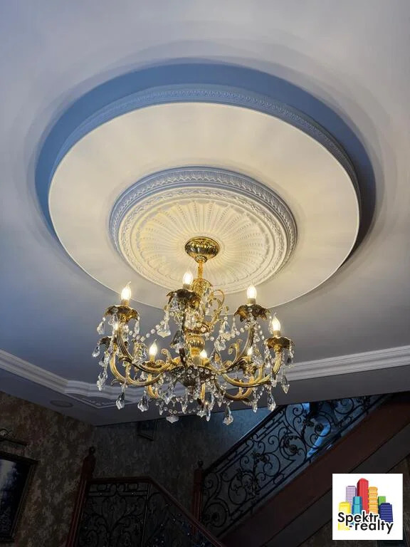 В доме 6 комнат: 4 спальни, большая гостиная с современным камином, кабинет и кухня. Удобные лестницы с дизайнерскими коваными перилами, отделанные дубом, придают дому величие и великолепие. Просторная прихожая с деревянными потолками в классическом стиле. Везде дубовые встроенные шкафы. Все из дорогих, добротных материалов – камерно, без излишеств. Серьёзно продумана входная группа. На каждом этаже санузел.