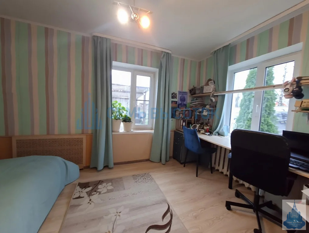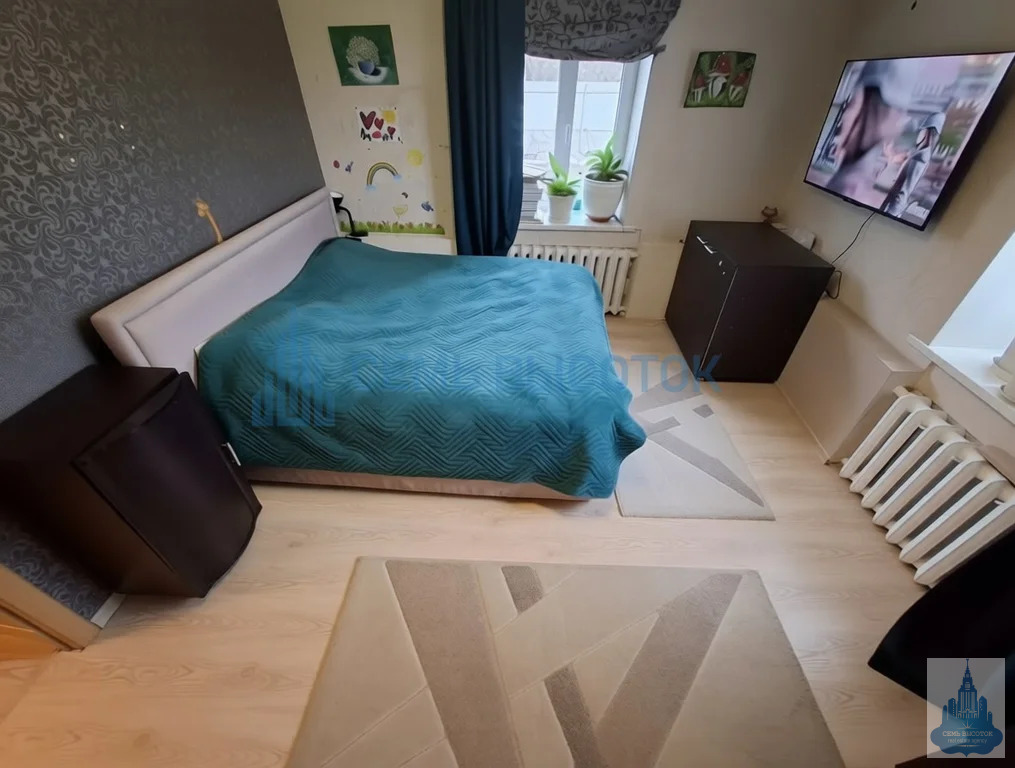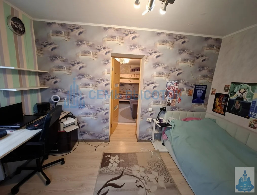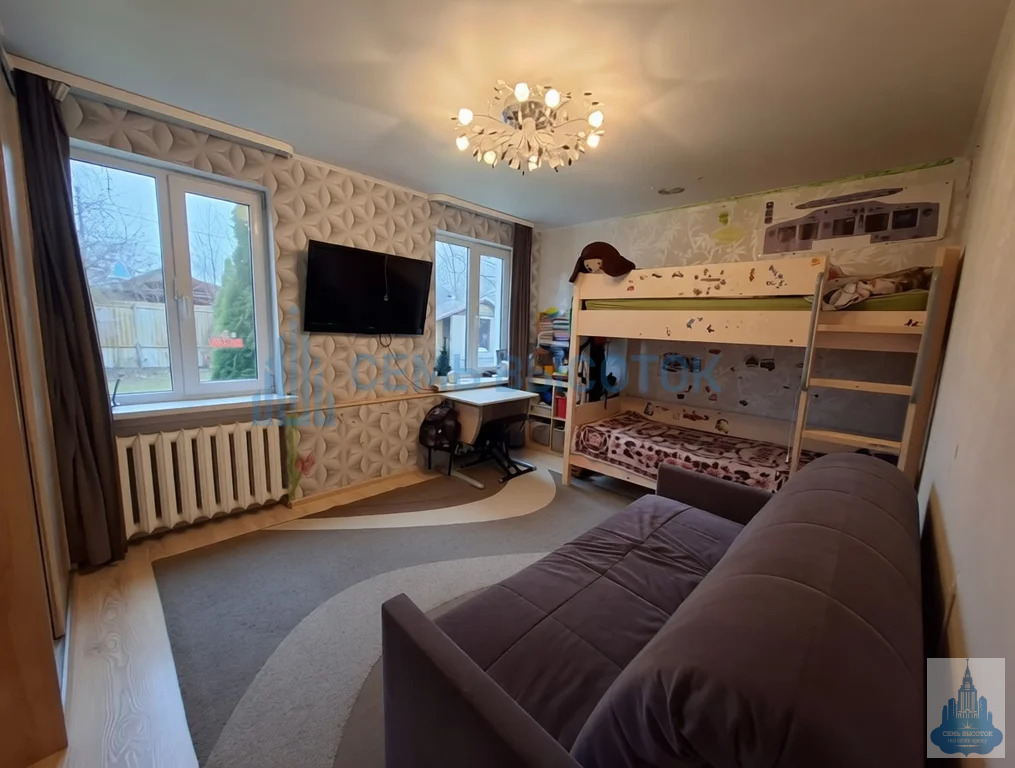 3 комнаты (16,5 м, 10 м и 19 м — последнюю легко сделать изолированной). Стены готовы под ваш ремонт: сейчас — детские рисунки, завтра — ваш уют.