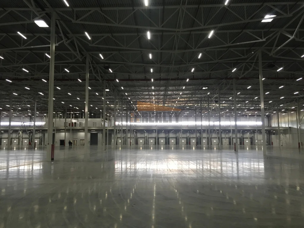 Рабочая высота потолков 12 метров, бетонные полы с антипылевым покрытием, нагрузка на пол в складских помещениях 8 тонн на кв. м.